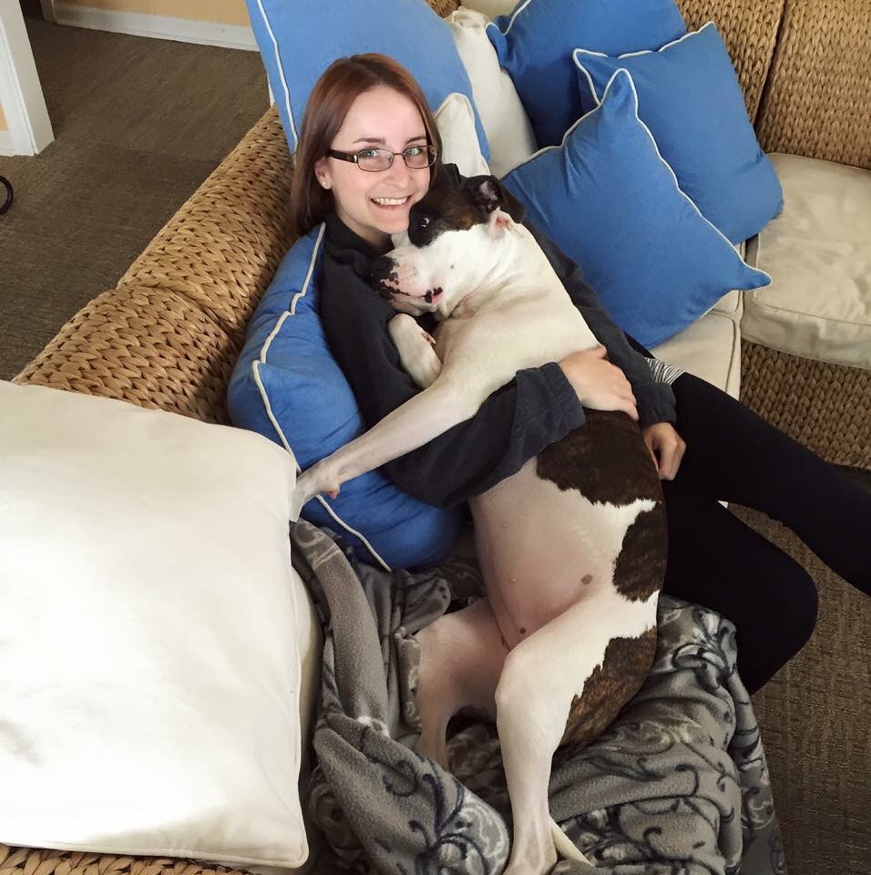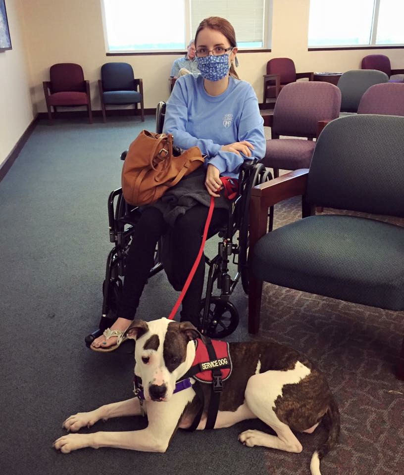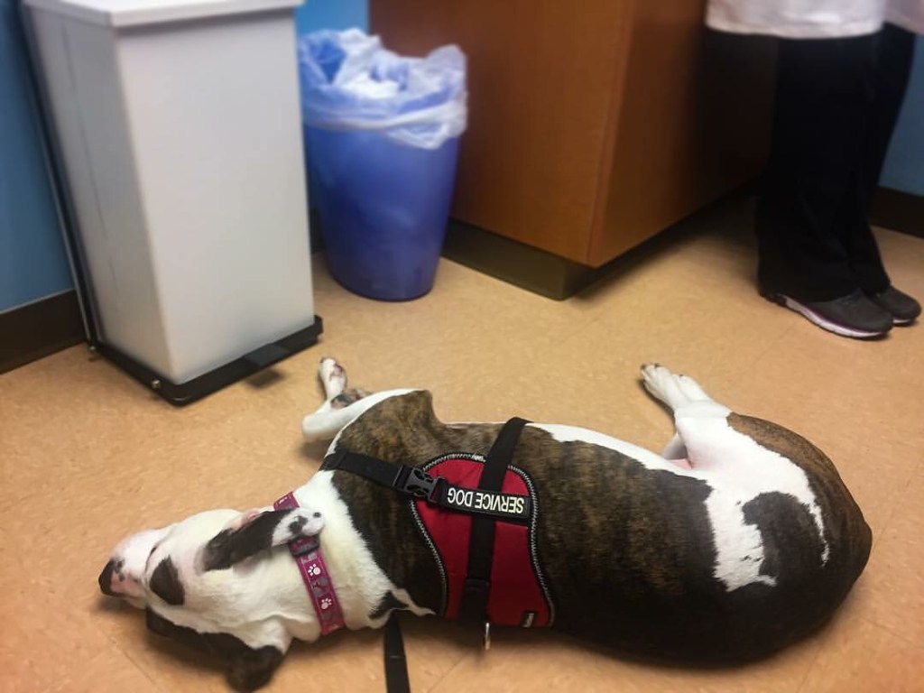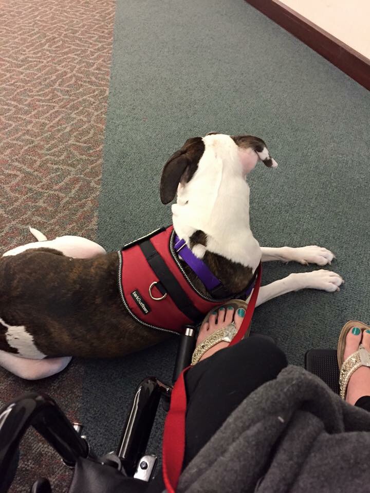 Training Addie was the easy part for us. The hard part was dealing with the preconceived notions about pitbulls. This is something we had become used to since we adopted Addie but when she became my service dog it got much worse. Addie was now allowed to go everywhere with me and people who don’t like pitbulls think that is wrong and she is a danger. People would make comments about how “they didn’t know dangerous breeds could be service dogs” or they would tell me that Addie is scary or that pitbulls are dangerous. To some people it doesn’t seem to matter that Addie saves my life every day, they still only think of the stereotypes they’ve heard. I’m sad for those people because they are truly missing out on the chance to have an incredible, loyal dog. It’s ironic when people approach us while Addie is sitting nicely and their non-“dangerous breed” is acting like an idiot, barking, tugging, and snapping. In the years that followed my POTS has gotten much worse but Addie has saved me from so many injuries simply by being herself.