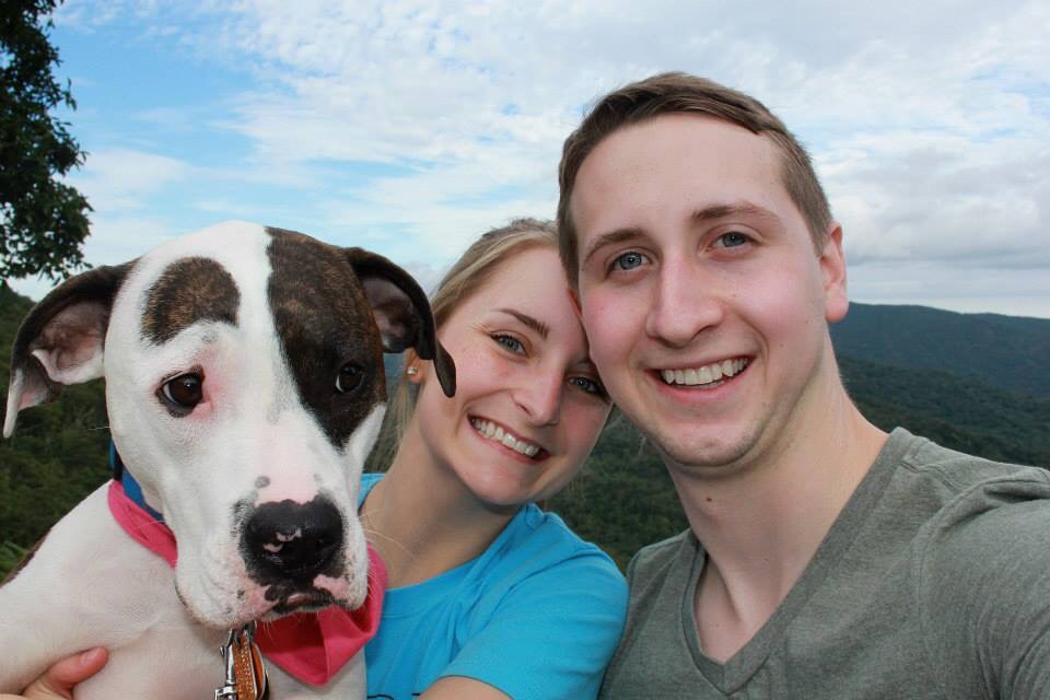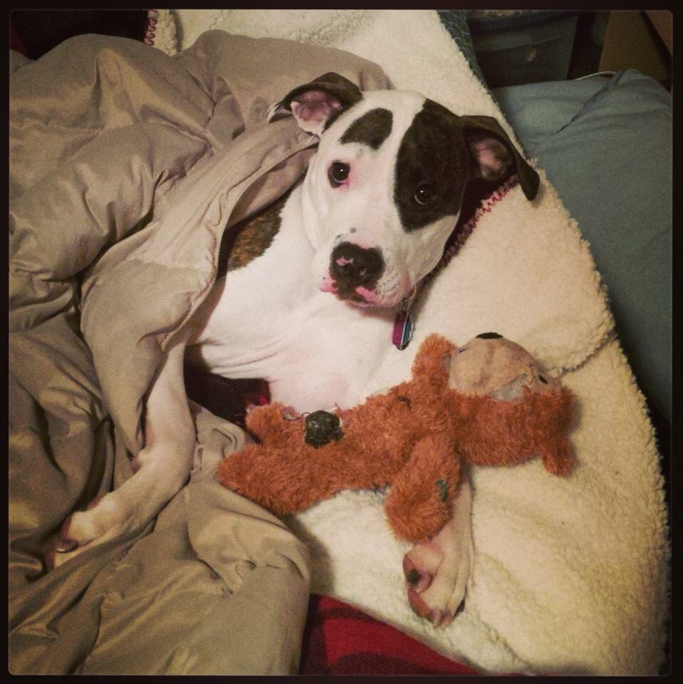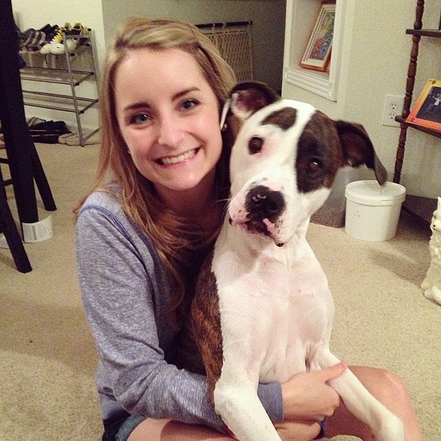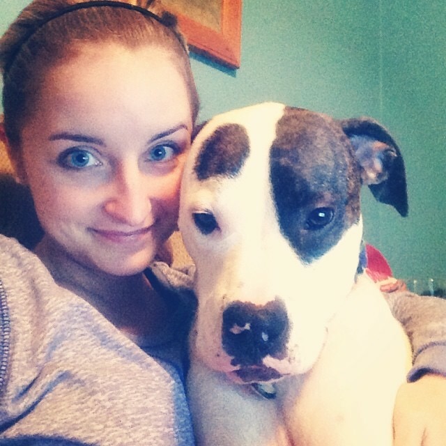 On June 8th, 2013 (exactly 4 years ago today!) Kyle and I went to the humane society to pick out our first dog together. I had spent weeks looking on their website at the dogs so I thought I had a general idea of which dogs I wanted to meet. I did not think I wanted a pitbull. I never had anything against them but I didn’t have much experience with them and I was always told that they were too strong for me to handle. We met the first dog on my list (who oddly was named Macey by the shelter) and things just didn’t click. The volunteer continued to show us a few other dogs but we just weren’t sure. On the way to see another dog I noticed this frightened little pitbull puppy laying on her kennel floor shaking and I insisted the volunteer let me go in and see her next. The volunteer told us that the pitbull’s name was Iris but that she was very scared and wouldn’t recommend her. But Kyle knew I was already sold. He now says she was the most pathetic thing at the shelter so he knew the second I saw her that that’s the one we’d be taking home. The volunteer wasn’t kidding about Iris being a terrified little girl. But it seemed this frightened puppy fell in love with me the same instant that I fell in love with her. She let me approach her at the cage and loved my attention and then walked so well for me on a leash.